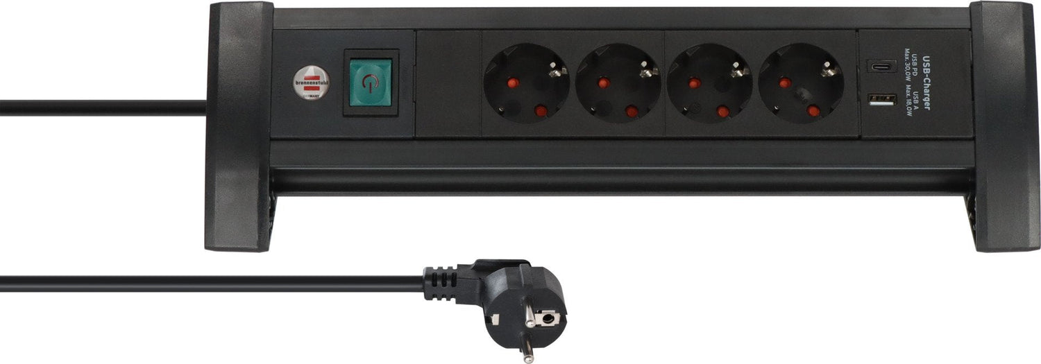 Brennenstuhl 1156250544, 1,8 m, Interior, Derecho, IP20, Cloruro de polivinilo (PVC), Negro