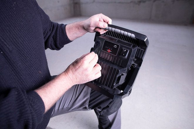 Brennenstuhl 1173140600. Color del producto: Negro, Código IP (International Protection): IP65, Material de la carcasa: Metal. Potencia total: 60 W, Tecnología de la bombilla: LED, Temperatura de color: 6500 K. Fuente de energía: AC/Batería, Potencia: 61,6 W, Voltaje de entrada: 100 - 240 V. Ancho: 260 mm, Profundidad: 160 mm, Altura: 265 mm. Cantidad por paquete: 1 pieza(s)
