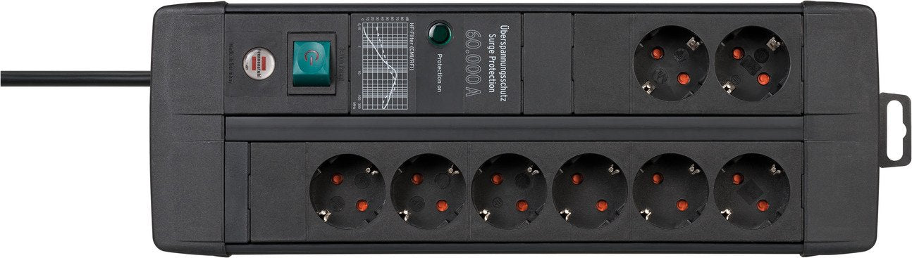 Brennenstuhl 1256000698, 3 m, Interior, Angular, IP20, Negro, 8 salidas AC