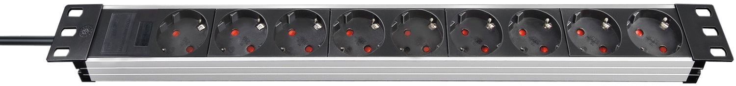 Brennenstuhl 1390007009. Longitud de cable: 2 m, Material de la carcasa: Aluminio, Color del producto: Aluminio, Negro. Cantidad de salidas AC: 9 salidas AC. Máxima corriente: 16 A. Color del cable: Negro