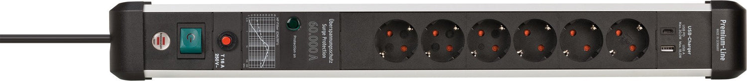 Brennenstuhl 1391010620. Longitud de cable: 3 m, Colocación soportada: Interior, Factor de forma de enchufe eléctrico: Angular. Cantidad de salidas AC: 6 salidas AC. Potencia total de USB: 48 W. Ancho: 75 mm, Profundidad: 95 mm, Altura: 615 mm. Número de productos incluidos: 1 pieza(s)