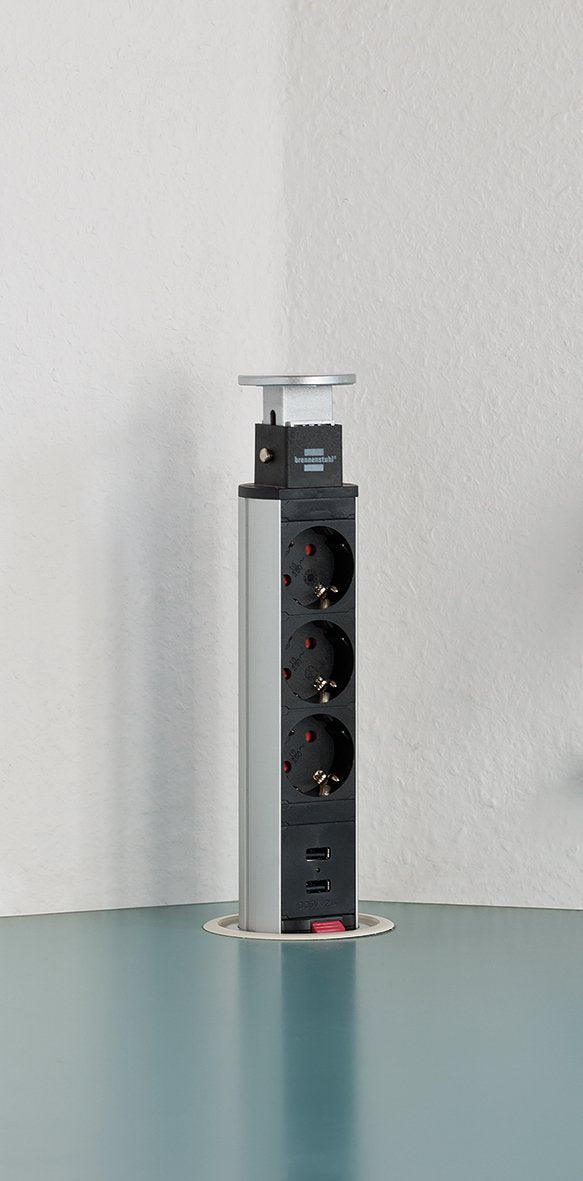 - Innovador enchufe de mesa para flexibles diseños de puestos de trabajo.