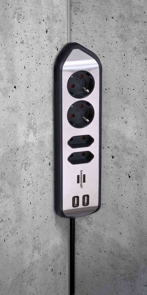 Brennenstuhl 1153590410 base múltiple 2 m 4 salidas AC Interior Negro, Plata