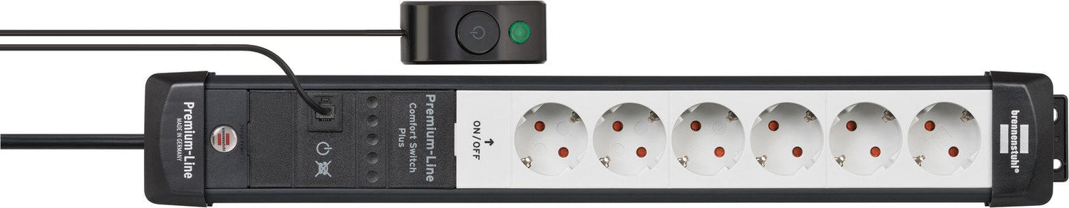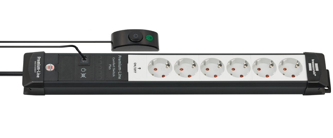 Brennenstuhl Premium-Line. Longitud de cable: 3 m, Colocación soportada: Interior, Factor de forma de enchufe eléctrico: Angular. Cantidad de salidas AC: 6 salidas AC. Voltaje de entrada AC: 230 V, Frecuencia de entrada AC: 50 Hz, Máxima corriente: 16 A. Ancho: 90 mm, Profundidad: 525 mm, Altura: 80 mm. Número de productos incluidos: 1 pieza(s)