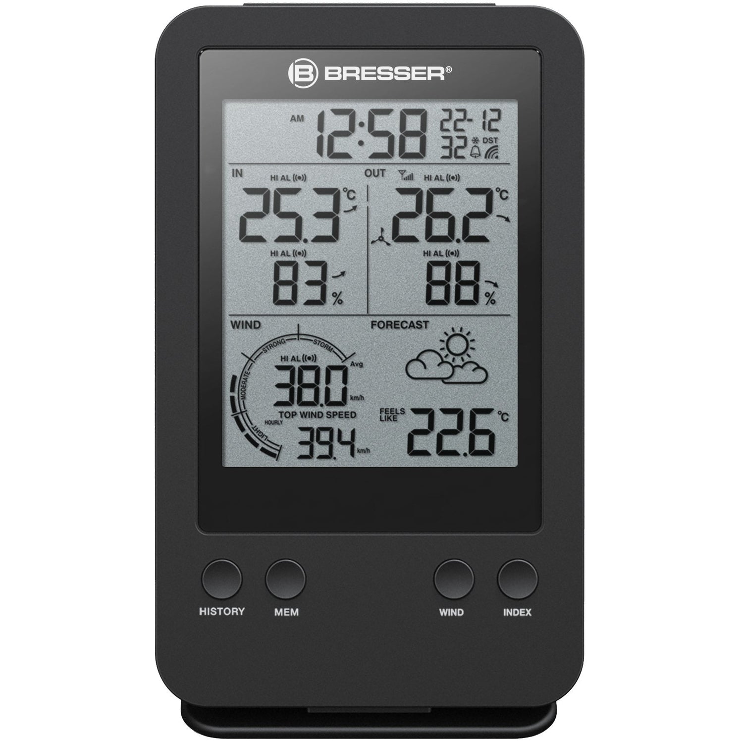 Bresser Optics 7002531, Negro, Anemómetro (velocidad del viento), Higrómetro de interior, Termómetro de interior, Higrómetro..., Higrómetro, Termómetro, Higrómetro, Termómetro, km/h, 868 MHz