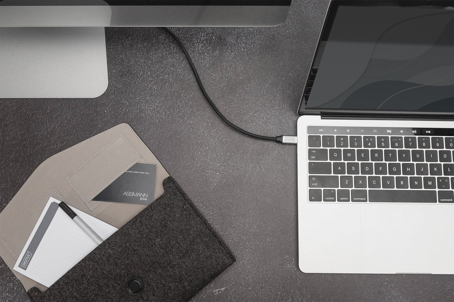 El cable de conexión Digitus® USB 3.0 Gen.1 es la solución universal entre los cables. El protocolo Thunderbolt 3 permite realizar transmisiones PCI Express, DisplayPort y Host-to-Host. Con este cable puede transmitir señales de audio/vídeo, datos y energía. La velocidad de transmisión de datos es de 5 Gbits/s. De esta manera puede transmitir en cuestión de segundos grandes volúmenes de datos, tales como películas y música. Las señales de vídeo se transmiten, como máximo, en 4K con una frecuencia de refresco de 60 Hz. Con USB Power Delivery está asegurada la función de carga. Con el correspondiente cargador puede cargar sus dispositivos inteligentes en poco tiempo con máx. 60 W (3 A/20 V). La interfaz USB Type C ofrece una amplia compatibilidad con dispositivos con esta conexión.