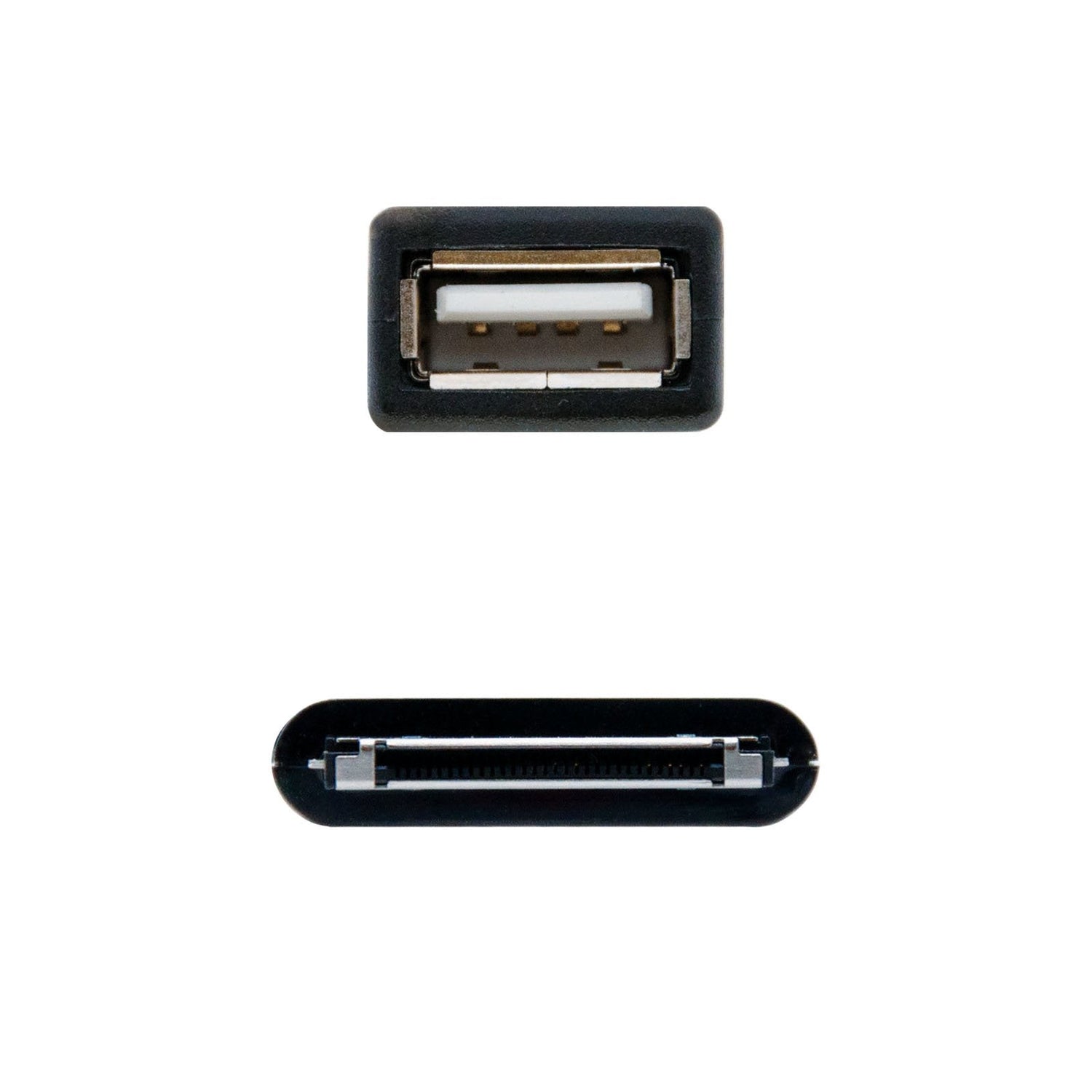 Nanocable 10.10.4000. Color del producto: Negro, Conector 1: USB A, Conector 2: Samsung 30-pin. Tipo de embalaje: Bolsa de plástico, Ancho del paquete: 160 mm, Profundidad del paquete: 10 mm. Cantidad por palé: 15000 pieza(s), Peso del envase completo: 9 kg, Volumen de caja: 33979 cm³