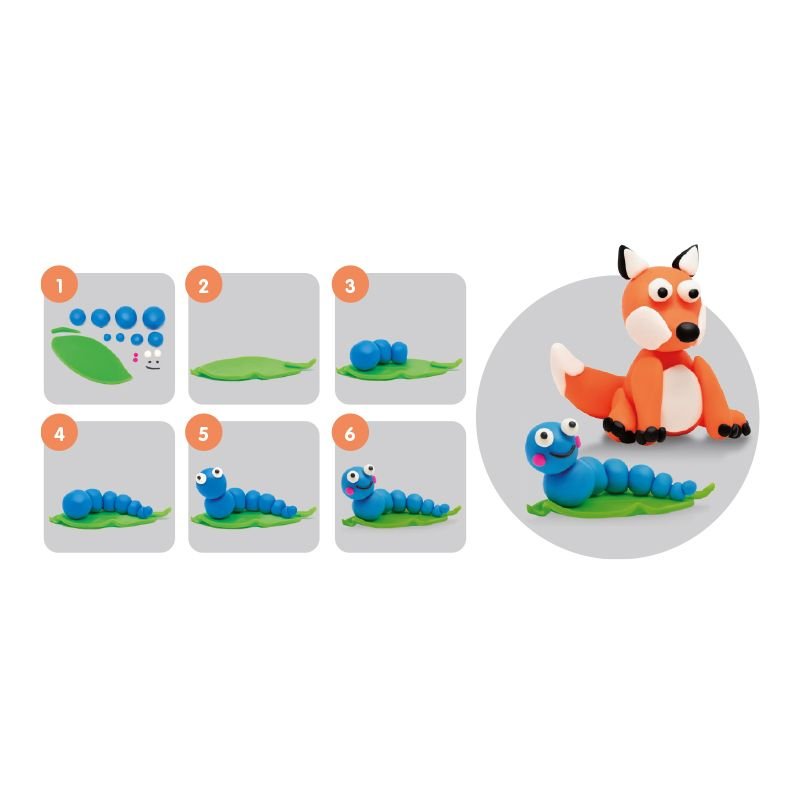 Pasta de modelar blanda "Soft Dough". Una pasta consistente y elástica, fácil de modelar. Contiene 10 colores: blanco, amarillo, naranja, rojo, rosa, lila, azul, verde claro, verde y negro. Se pueden crear nuevos tonos combinando dos o más colores. Nodeja residuos en las manos. Almacenada en botes de 85 g con tapa transparente apilables entre sí. Ingredientes de origen vegetal.