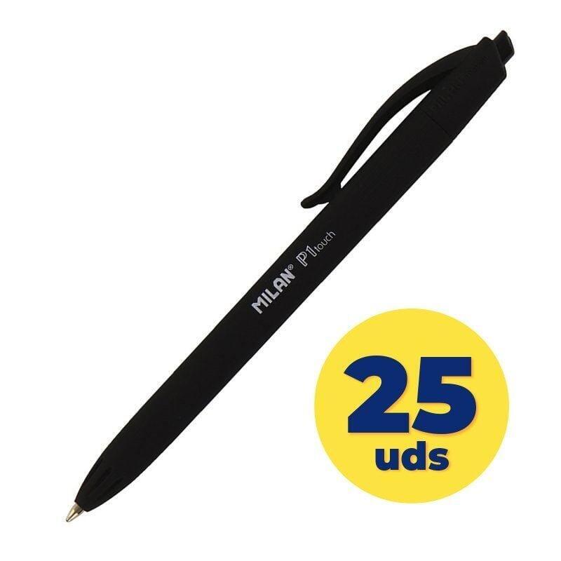 Caja De Bolígrafos De Tinta De Aceite Retráctil Milan P1 Touch Mln176511925 25 Unidades Negros