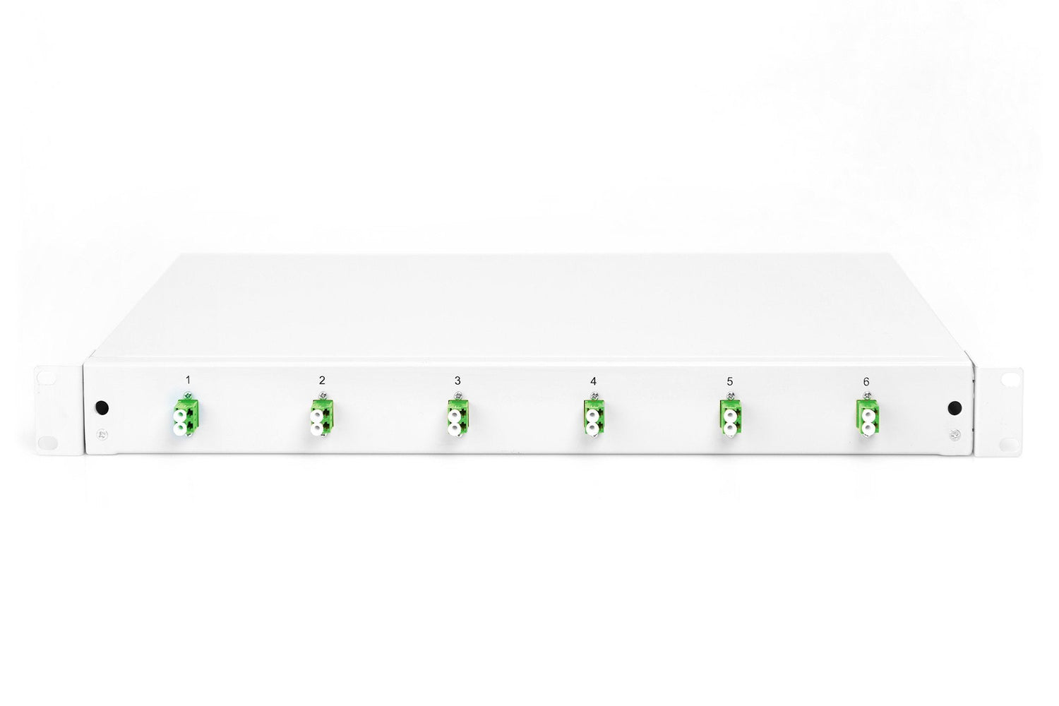 Digitus Caja de empalme de fibra óptica, montada, 6x LC-APC DX, OS2. Tipo: Panel de gestión de cables, Material de la carcasa: Polímero, Acero, Color del producto: Gris claro. Cantidad por paquete: 1 pieza(s)