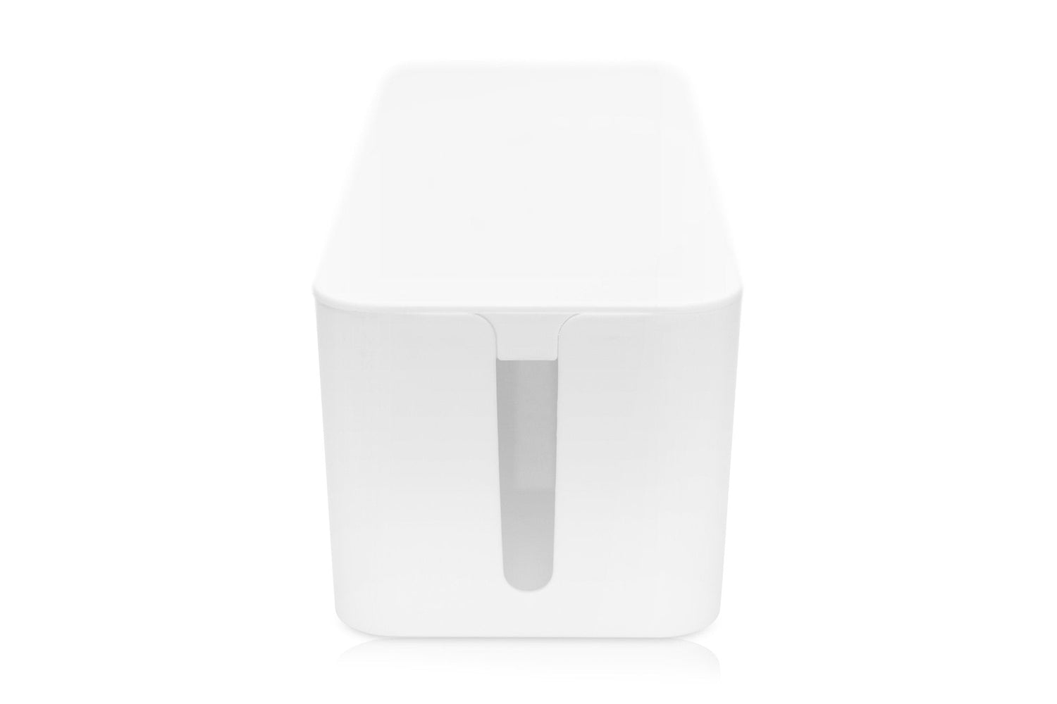 ¡Ponga fin a la maraña de cables y polvo! La caja de gestión de cables le ayuda a poner orden en cualquier lugar. Todos conocemos el desagradable montón de cables y enchufes que se oculta debajo de muchos escritorios y muebles de TV. Guarde sus enchufes y fuentes de alimentación de forma ordenada y limpia en la caja para cables de DIGITUS® y proteja sus cables del polvo y la suciedad. Además, se dificulta el acceso a los enchufes de niños y mascotas, lo que aumenta la seguridad en su hogar. El diseño, tan sobrio como elegante e intemporal, no desentona en ningún escritorio o mueble de TV. Incluso al pasar el aspirador o fregar, se ahorrará el engorro de recoger todos los cables y las regletas de enchufes y limpiarlos uno a uno, sino que basta con levantar la caja y en un momento tiene el trabajo hecho. Los cables se mantienen limpios y sin polvo en su interior. Además, las almohadillas antideslizantes situadas debajo de la caja garantizan un buen soporte. Declárele la guerra al caos de cables y ponga orden con la caja de gestión de cables de DIGITUS®.