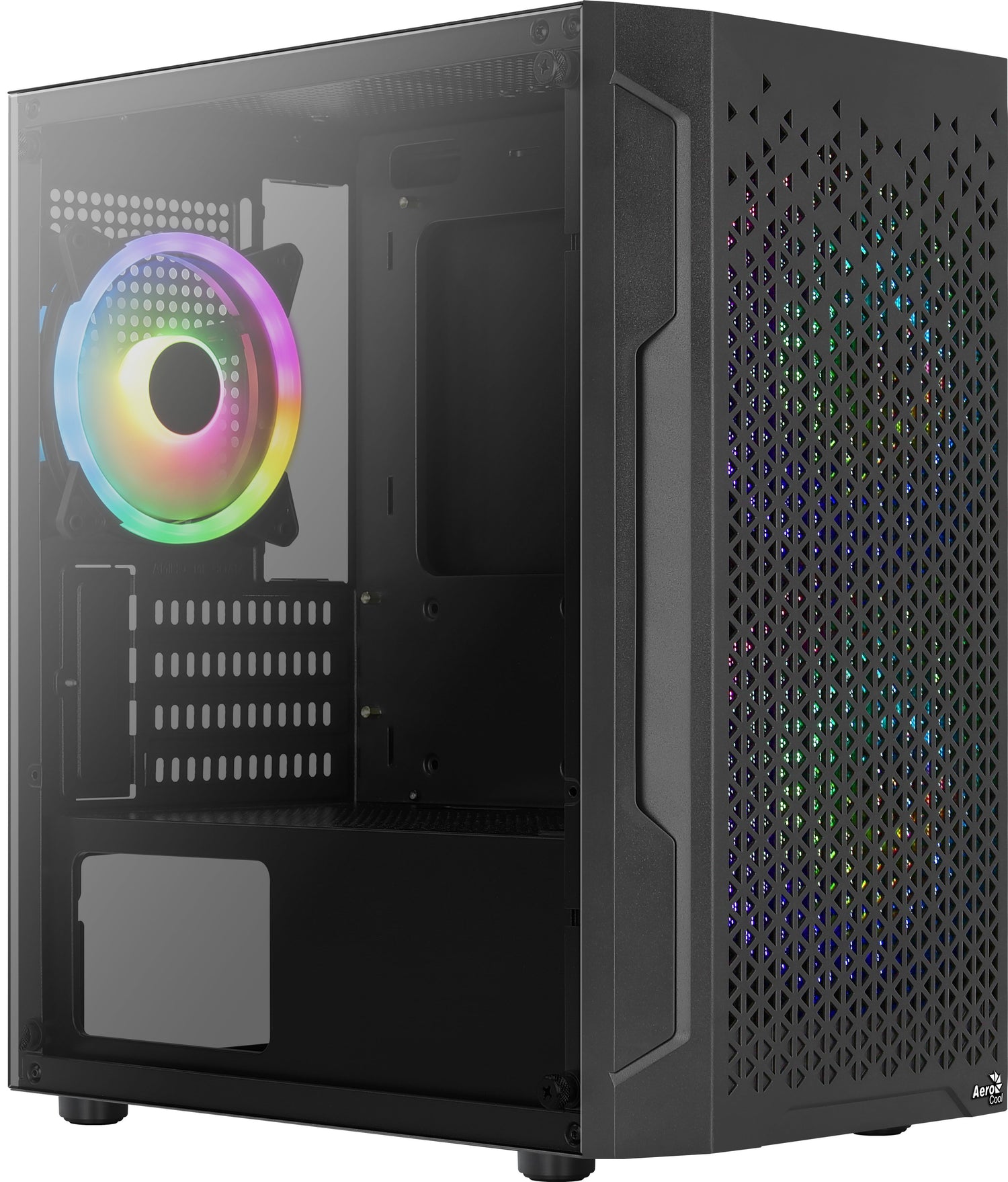 Consigue un rendimiento óptimo de tus componentes mientras alargas su vida útil gracias a la capacidad de refrigeración de la caja de Aerocool TRINITY. Esta mini torre ha sido fabricada con un diseño de cámara dual para dirigir el calor fuera de la cámara principal, cuenta con soporte para instalar hasta 5 ventiladores en la parte frontal (2x FRGB 14cm incluidos), superior y posterior (1x FRGB 12cm incluido) de la caja y dispone, además, de soporte para hasta 2 ventiladores extra de 12 cm sobre la PSU para una refrigeración máxima de la VGA.
