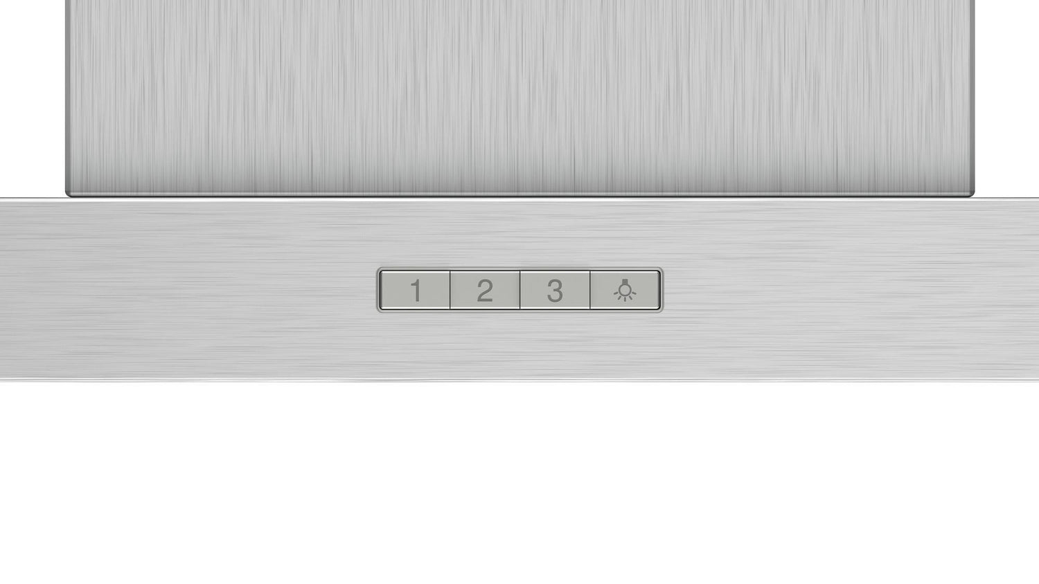 Bosch Serie 2 DWB96BC50. Máxima capacidad de extracción: 590 m³/h, Tipo de extracción: Canalizado, Clasificación eficiencia dinámica de fluidos: A. Tipo: De pared, Color del producto: Acero inoxidable, Material de la carcasa: Acero inoxidable. Tipo de filtro de grasa: Aluminio. Potencia de bombilla: 3 W, Número de bombillas: 2 bombilla(s), Tipo de bombilla: LED. Clase de eficiencia de energía: A, Consumo de energía anual: 43,4 kWh, Escala de eficiencia energética: A++ a E