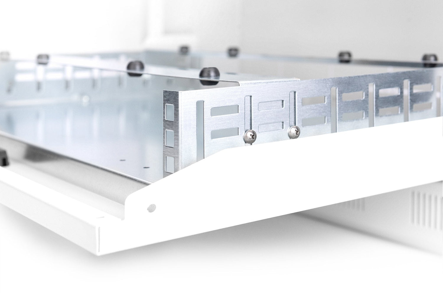 - Soporte de montaje ajustable adicional con topes de goma para dispositivos DVR que no se pueden instalar con 482,6 mm (19”)