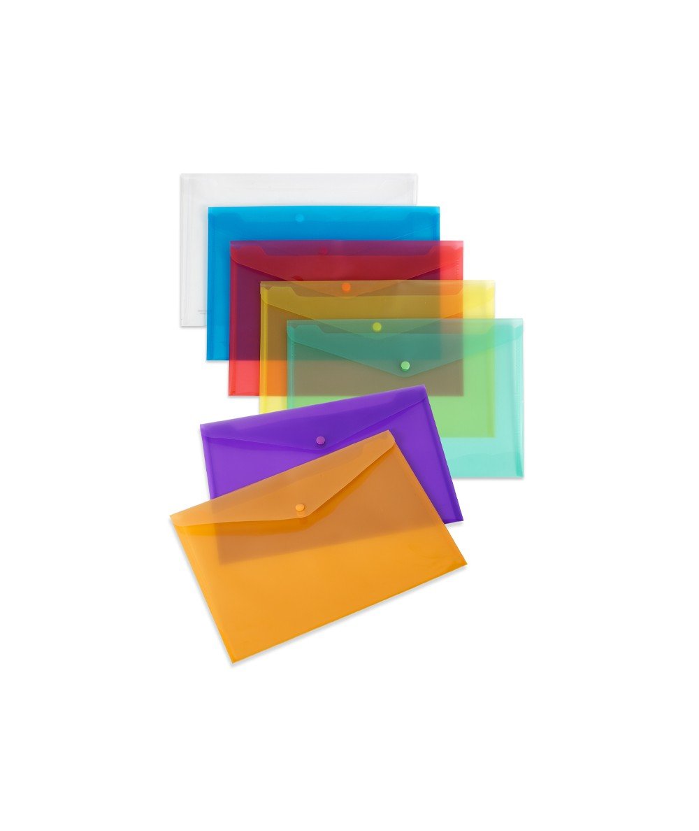 - Sobre de polipropileno traslúcido con solapa y cierre con broche de plástico