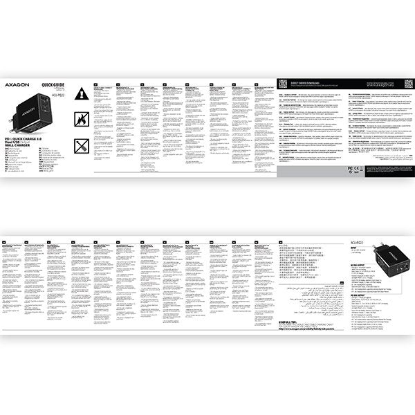 Cargador De Red Axagon Acu-Pq22, Pd Y Quick, 2x Puertos Qc3.0 / Afc / Fcp + Pd Tipo-C, 22w