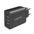 LogiLink PA0221. Tipo de cargador: Interior, Alimentación: Corriente alterna, Compatibilidad del cargador: Universal. Voltaje de entrada: 100 - 240 V, Voltaje de salida máximo: 5 V, Corriente de salida de adaptador AC: 3 A. Cantidad de puertos USB 2.0: 3, Número de puertos USB Tipo C: 1, Carga rápida, Funciones de protección de poder: Sobreintensidad, Sobrevoltaje, Sobrecalentamiento, Cortocircuito. Color del producto: Negro