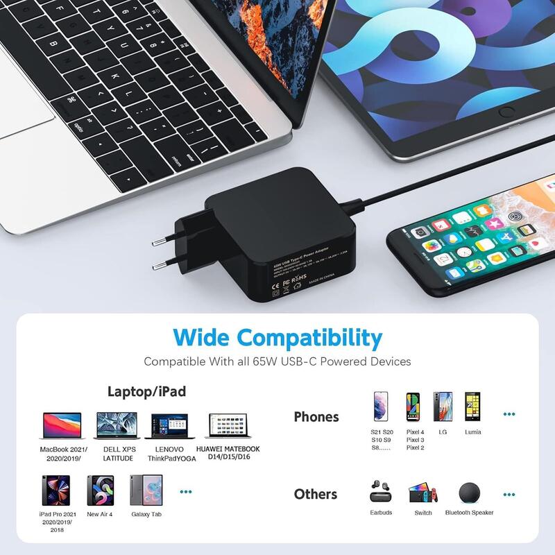 Cargador Rápido 65w Usb Tipo C 5v 9v 12v 15v 18v 20v Para Dell/Hp/A...