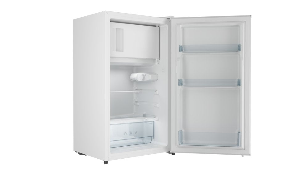 Teka RSR 10138. Capacidad neta total: 80 L. Bisagra para puerta: Derecho. Clase climática: N-ST, Nivel de ruido: 41 dB. Frigorífico, capacidad neta: 68 L, Luz interior de la nevera, Frigorífico, número de compartimentos: 2, Número de compartimientos para verduras: 1. Congelador, capacidad neta: 12 L. Clase de eficiencia de energía: E, Consumo de energía anual: 137 kWh. Color del producto: Blanco