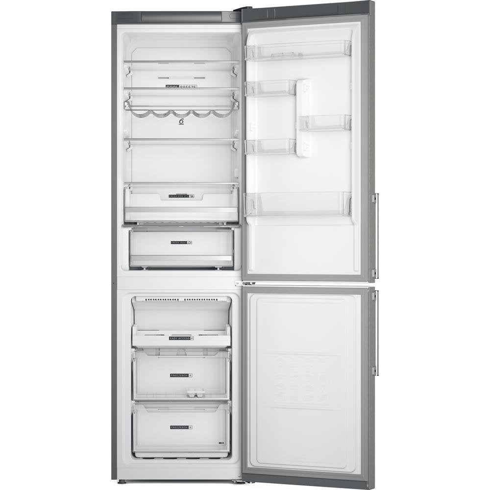 Whirlpool W7X 92O OX H. Capacidad neta total: 367 L. Bisagra para puerta: Derecho. Clase climática: ST-T, Nivel de ruido: 39 dB. Frigorífico, capacidad neta: 263 L, Luz interior de la nevera, Frigorífico, número de compartimentos: 4, Número de compartimientos para verduras: 2. Congelador, capacidad neta: 104 L. Clase de eficiencia de energía: E, Consumo de energía anual: 254 kWh. Color del producto: Gris