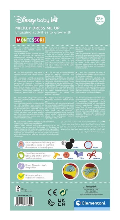 Clementoni Disney Baby Baby Mickey Dress me up. Tipo de producto: Animales de juguete, Edad recomendada (mín.): 1,6 año(s), Tema: Disney