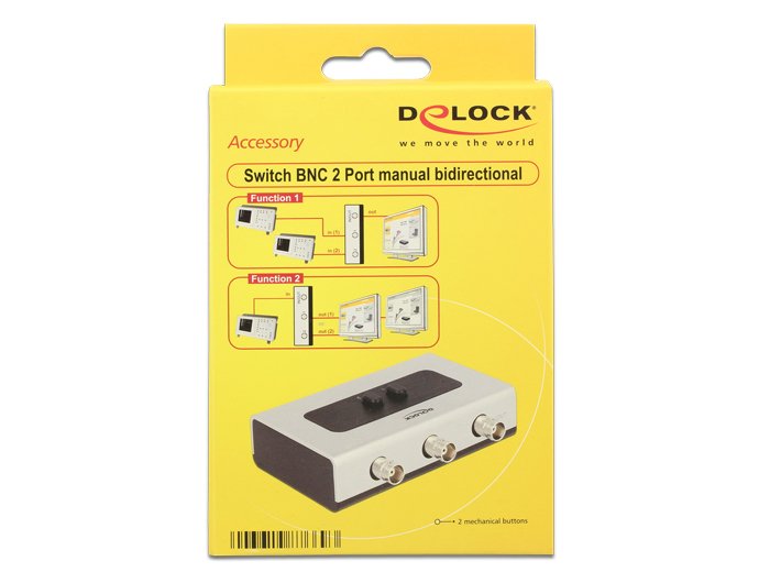 Este conmutador BNC de Delock es un conmutador bidireccional manual que permite conectar diferentes dispositivos con puerto BNC. Este conmutador ofrece dos aplicaciones diferentes.
