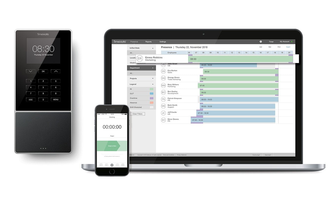 Controlador De Presencia Safescan Timemoto Tm-616 Tarjeta Rfid/Llavero/Pin Pantalla 7cm Hasta 200 Usuarios Lan/Wifi/Usb Host