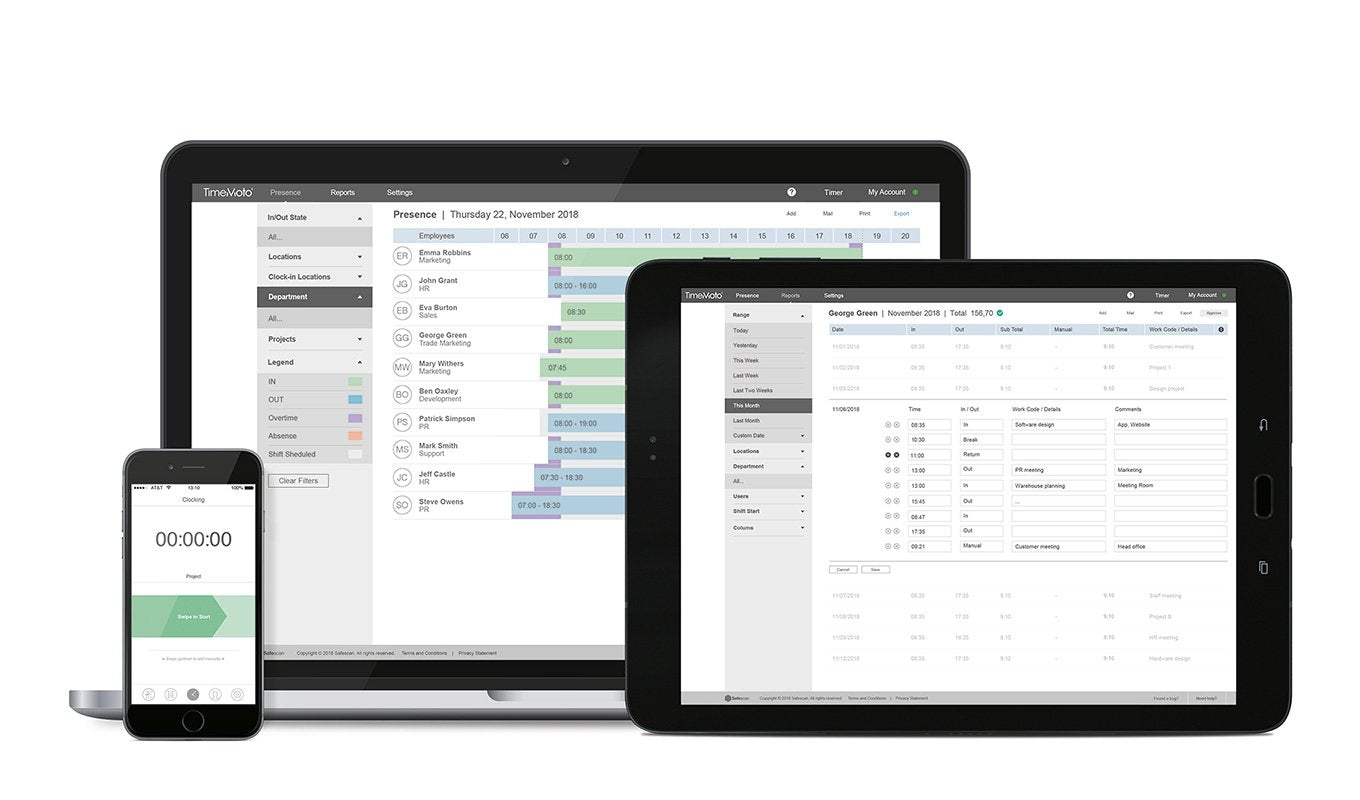 Safescan TimeMoto TM-616. Color del producto: Negro, Tipo de autenticación: Tarjeta de proximidad, Tipo de visualizador: TFT. Alimentación: Corriente alterna, Voltaje de entrada AC: 110 - 240 V, Voltaje de entrada DC: 12 V. Sistema operativo Windows soportado: Windows 10, Windows 7, Windows 8. Ancho: 215 mm, Profundidad: 99,5 mm, Altura: 44,3 mm