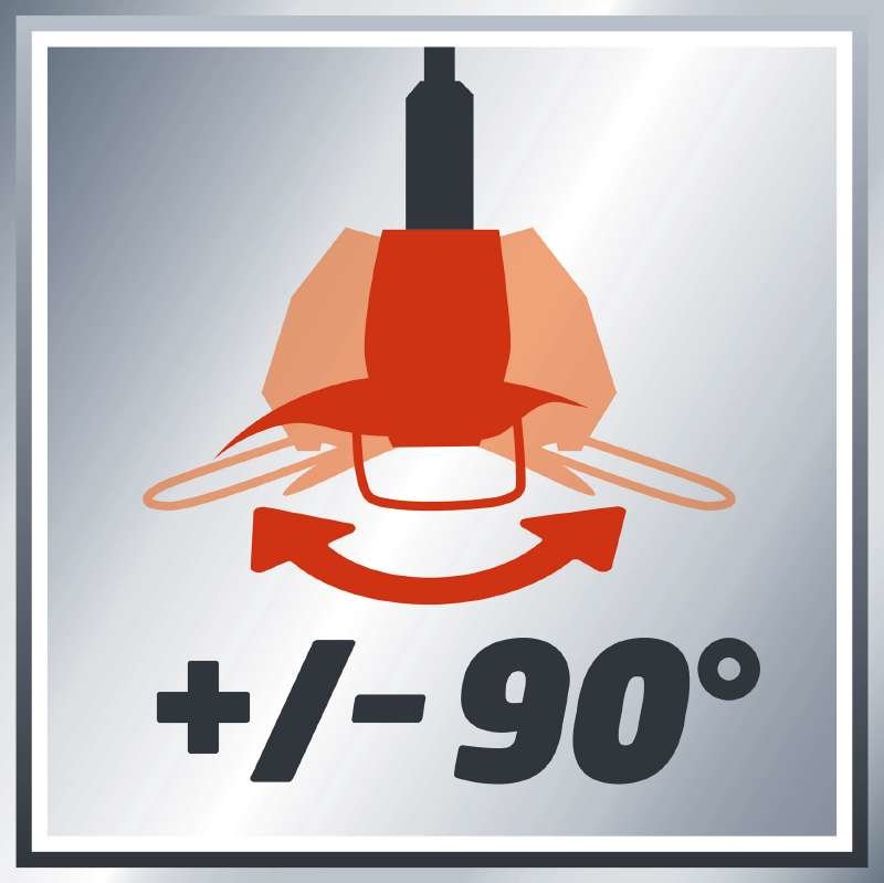 - Cabezal del motor giratorio +/- 90°: Para superficies verticales / bordes