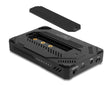 Esta carcasa de Delock de estilo gaming con numerosas ranuras de ventilación permite el funcionamiento simultáneo de un SSD M.2 NVMe, en formato 2280, 2260 y 2242, y un HDD o SSD SATA de 2.5″ a través de la interfaz USB-C™.