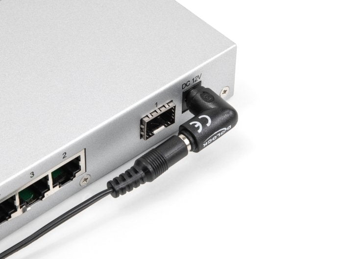Este adaptador de CC de Delock permite alimentar dispositivos con una conexión de CC. Con el ángulo de 90°, el adaptador ofrece una solución ideal cuando el espacio es limitado.