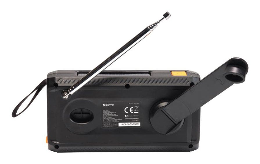 Denver SCD-2033. Tipo de radio: Portátil, Bandas de radio soportadas: DAB+, FM. Conector USB: Micro-USB A, USB Tipo C. Color del producto: Negro. Tecnología de batería: Polímero de litio, Capacidad de batería: 2000 mAh, Tipo de batería: Batería integrada. Fuente de energía: Batería/Solar