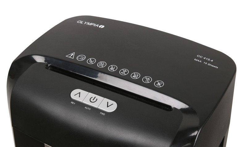 Olympia CC 415.4. Tipo de triturador de papel: Corte cruzado, Ancho de trabajo: 22 cm, Tamaño de trituración de papel: 4 x 35 mm. Consumo energético: 320 W, Voltaje de entrada AC: 230 V, Frecuencia de entrada AC: 50 Hz. Ancho: 348 mm, Profundidad: 250 mm, Altura: 502 mm