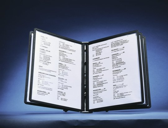 SHERPA® soho es un clasificador de mesa económico y ahorra espacio. Incluye 5 fundas tamaño A4 con marco de color negro. Ideal para usar en oficinas pequeñas, resulta perfecto para listas de precios, información de producto, números de teléfono, etc.
