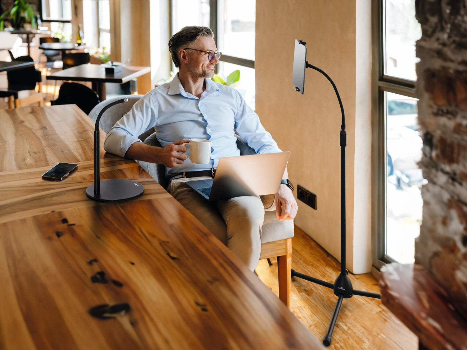 Durable TWIST COMBI, Teléfono móvil/smartphone, Tablet/UMPC, Soporte activo para teléfono móvil, Escritorio, Interior, Exterior, Negro