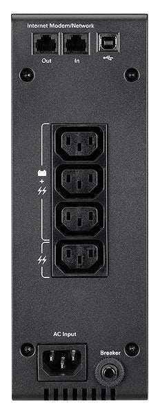 Eaton 5S 550i. Capacidad de potencia de salida (VA): 0,55 kVA, Potencia de salida: 330 W, Voltaje de entrada de operación (min): 175 V. Tipo de salida AC: C13 acoplador, Conector: C14 acoplador, Cantidad de salidas AC: 4 salidas AC. Tecnología de batería: Sealed Lead Acid (VRLA), Tiempo típico de respaldo a media carga: 10 min. Factor de forma: Torre, Color del producto: Negro. Seguridad: IEC/EN 62040-1, IEC/EN 62040 -2, CB, CE