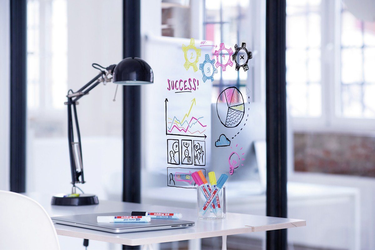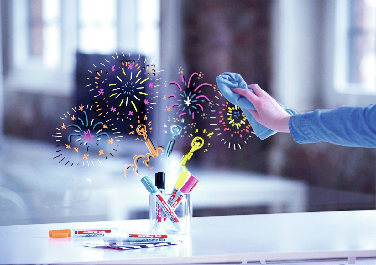 Edding 95 Glass, 6 pieza(s), Negro, Azul, Naranja, Rosa, Blanco, Amarillo, Punta redonda, Multicolor, Plástico, 1,5 mm