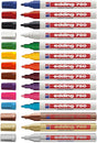 A la hora de trazar líneas y adornos brillantes sobre superficies lisas como vidrio, metal o plástico, nada hay tan práctico como nuestro marcador edding 750 de efecto lacado. Con su cómoda punta redondeada nos permite embellecer con facilidad tulipas de cristal, floreros de cerámica glaseada, sujetalibros de madera lacada, bandejas metálicas... Las posibilidades son infinitas. Sus colores, vivos y resistentes (entre ellos varios tonos metálicos) irradian frescor y vivacidad en su entorno, al gusto de quien los utiliza. Si lo que busca es un trazo más fino, no dude en recurrir al marcador edding 751; y si necesita una escritura o un adorno muy delicado, opte por el modelo edding 780.
