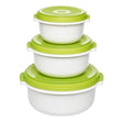 EMSA 509741. Tipo: Establecer, Factor de forma: Alrededor, Color del producto: Verde, Blanco. Volumen del recipiente de almacenaje de alimentos 1: 500 ml, Volumen del recipiente de almacenaje de alimentos 2: 1000 ml, Volumen del recipiente de almacenaje de alimentos 3: 1500 ml. Cantidad por paquete: 3 pieza(s)