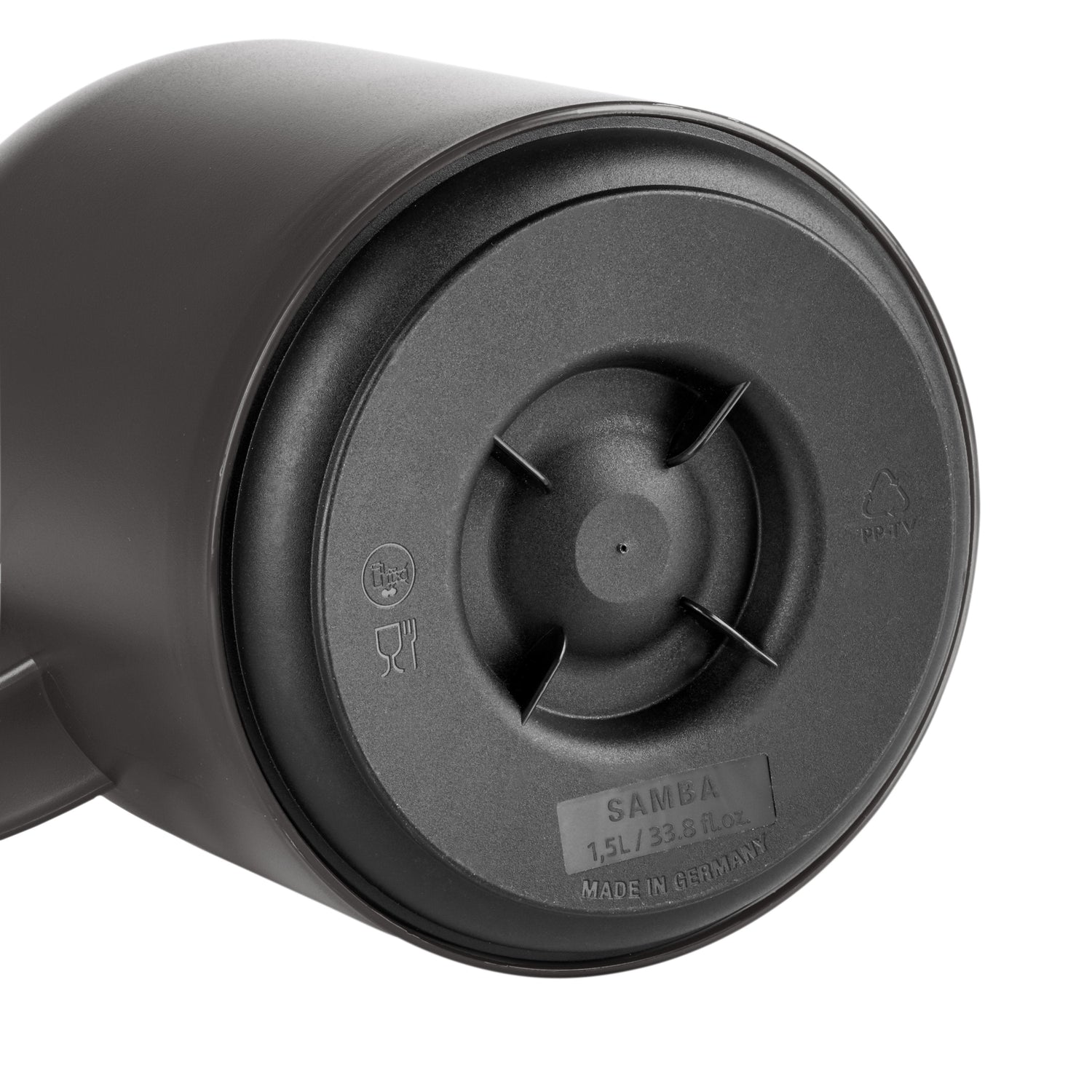 EMSA SAMBA N40119. Tipo de producto: Jarra, Volumen: 1,5 L, Color del producto: Negro. Ancho: 144 mm, Profundidad: 182 mm, Altura: 280 mm. Cantidad por capa de palet: 28 pieza(s), Cantidad por palé: 84 pieza(s)