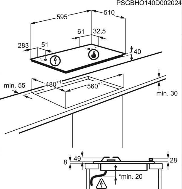 Electrolux EGS6436RK. Color del producto: Negro, Tipo de instalación: Integrado, Tipo de quemador: Encimera de gas. Tipo de control: Giratorio, Control de posición: Arriba a la derecha. Carga conectada (gas): 8800 W, Voltaje de entrada AC: 220 - 240 V. Ancho: 595 mm, Profundidad: 510 mm, Altura debajo de encimera: 3,7 cm