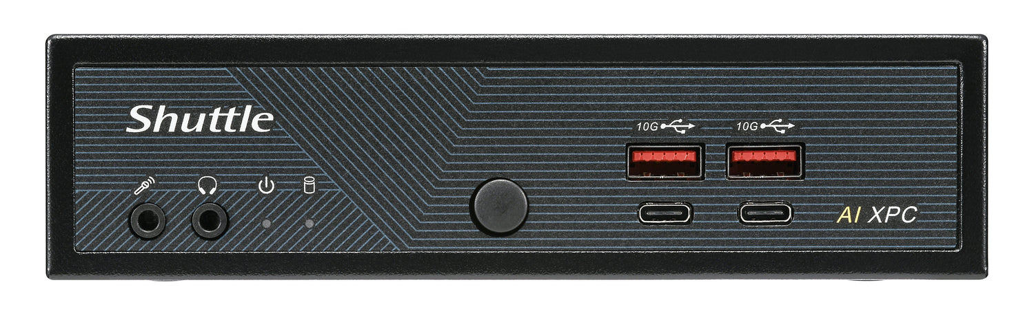 Shuttle Slim AI PC DN11H7. Tipo de chasis: 1,35 l tamaño PC, Tipo de producto: Mini PC barebone. Chipset: Intel® SoC, Tipos de BIOS: UEFI AMI. tipos de memoria compatibles: DDR5-SDRAM, Número de ranuras de memoria: 2, Memoria interna máxima: 96 GB. Tipos de unidades de almacenamiento admitidas: SSD, Interfaz de unidad de almacenamiento: PCI Express. Ethernet LAN (RJ-45) cantidad de puertos: 4. Tipo de enfriamiento: Activo. Fuente de alimentación: 120 W
