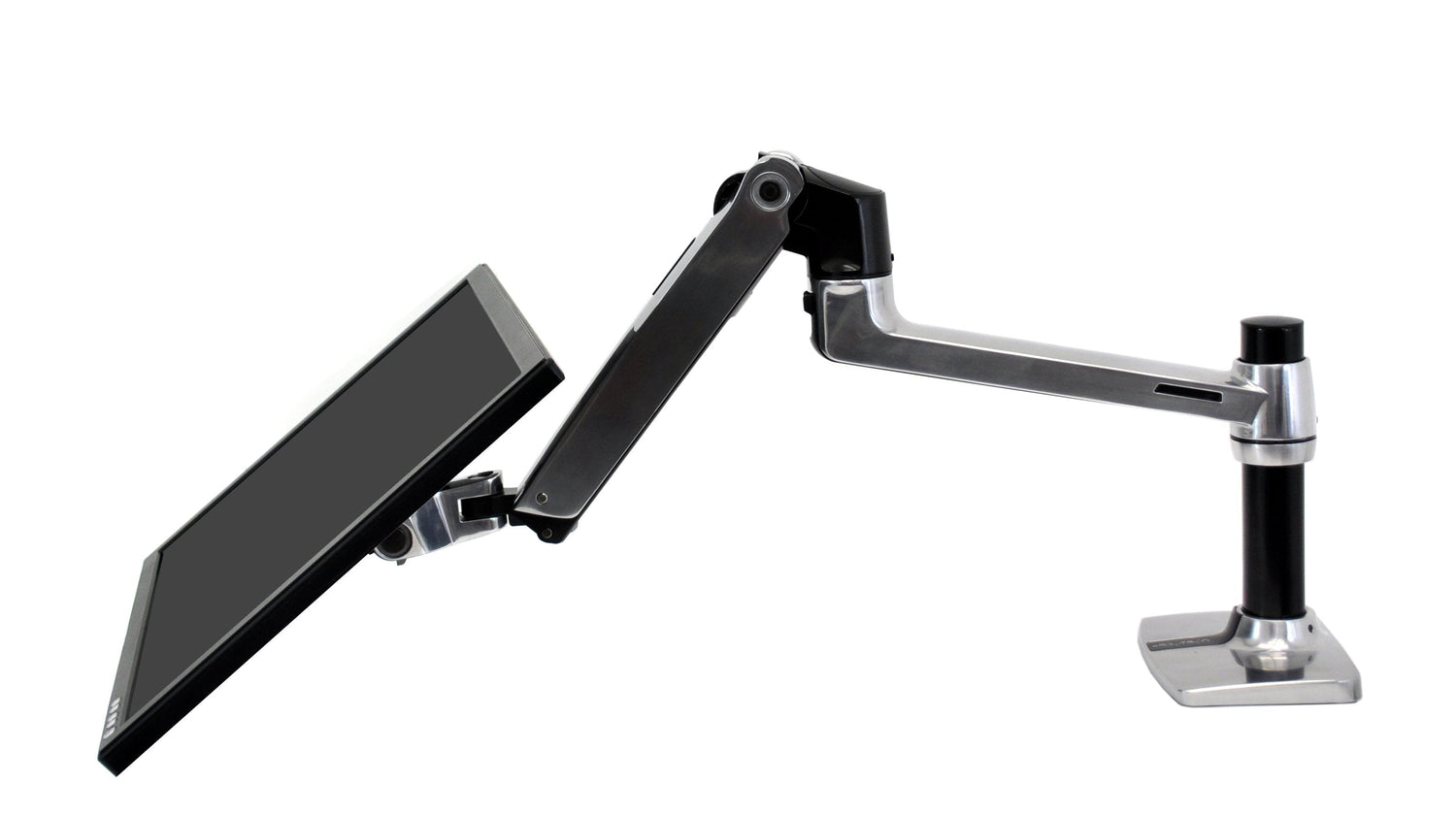 Busque su mejor visualización, ahorre espacio en el escritorio y descubra su yo más productivo, gracias al brazo para monitor de escritorio LX. Coloque la pantalla donde la necesite para cada proyecto, y luego recupere un espacio lleno de oportunidades al plegar el brazo y empujarlo hacia un lado durante un tan necesario descanso lejos de la pantalla. El brazo de lujo se ajusta fácilmente a monitores de hasta 34".