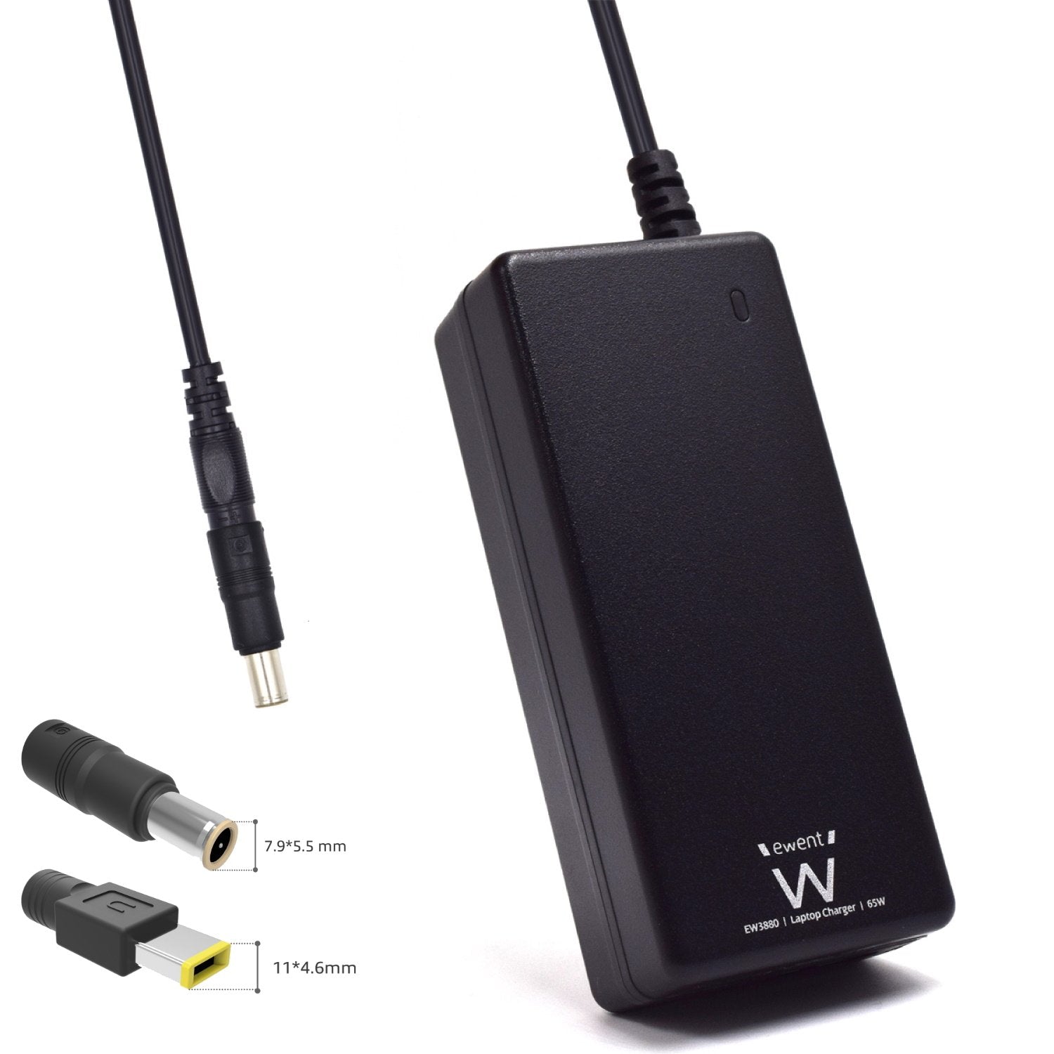 Todas las fuentes de alimentación para portátiles de Ewent están fabricadas con componentes sólidos y de calidad, y encajan perfectamente en el orificio de alimentación del portátil. La fuente de alimentación EW3897 está equipada con 2 conectores de dimensiones 7,95,5 mm y 114,6 mm (cuadrados), adecuados para portátiles IBM/LENOVO. Este adaptador dedicado se ajusta automáticamente al voltaje requerido, gracias a su tecnología inteligente que detecta qué conector está insertado. Para encontrar el conector que necesitas para tu portátil, te recomendamos que compruebes no sólo que las dimensiones coincidan y por tanto el conector "encaje", sino también que el voltaje indicado en el conector del adaptador sea el correcto para tu portátil. Para conocer el voltaje de cada conector, consulte el empaque o etiqueta de la fuente de alimentación original.