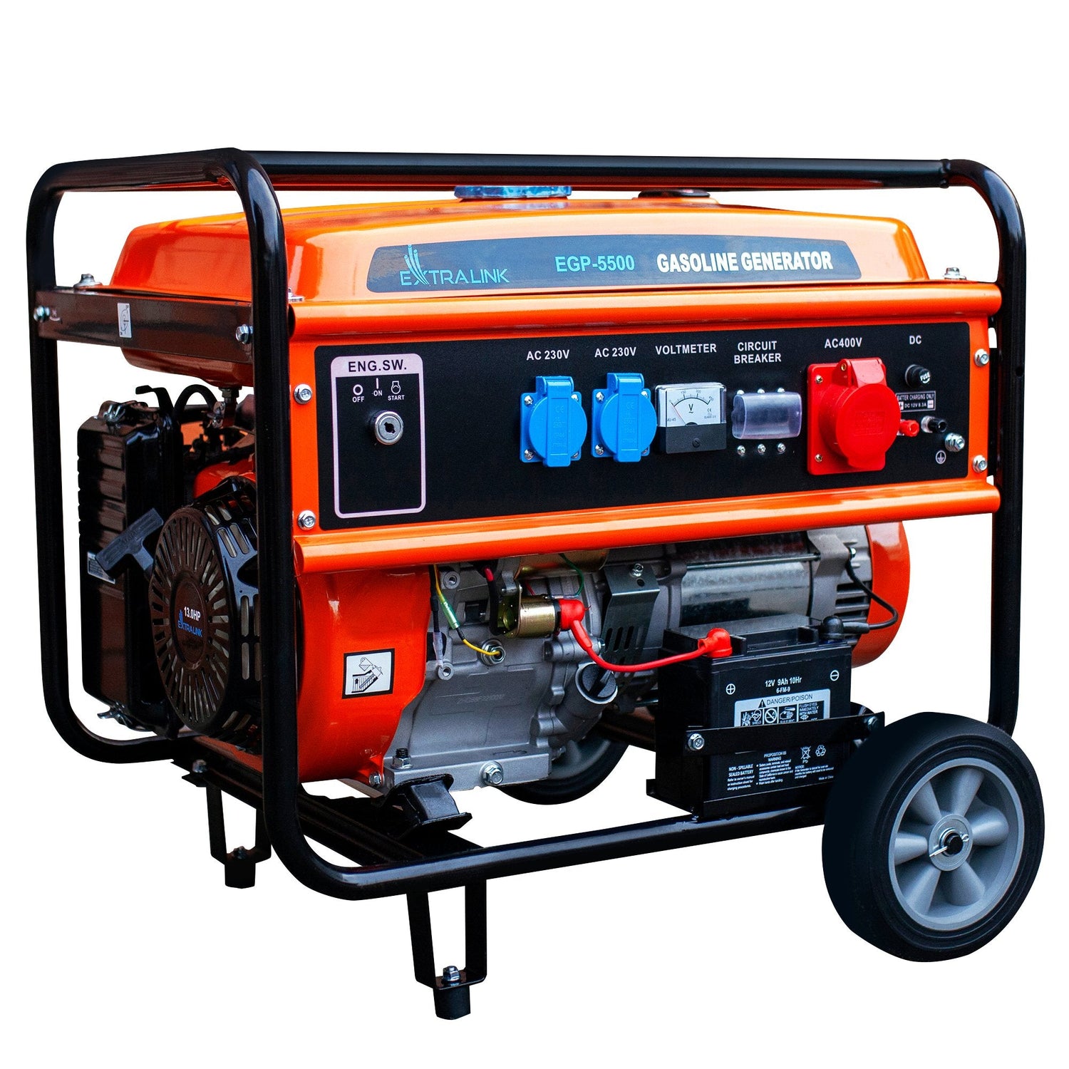 Extralink Generador de energía EGP-5500 gasolina, 5,5kW 3F, 5000 W, 220 V, 25 L, Gasolina, 1,87 l/h, Manual / electrónico
