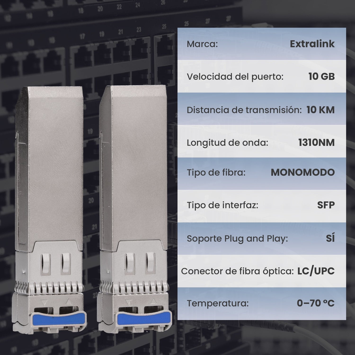 Aplicaciones en diversas industrias. Los módulos EXTRALINK SFP+ 10G se utilizan en diversos sectores, desde pequeñas empresas hasta grandes corporaciones, instituciones educativas y centros de datos. Su rendimiento y fiabilidad los convierten en la solución ideal para construir redes modernas y escalables.