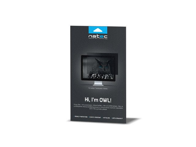 NATEC Owl. Tamaño máximo de pantalla: 35,6 cm (14"). Relación de aspecto: 16:9. Adecuado para: Portátil, Tipo: Filtro de privacidad para pantallas sin marco. Funciones de protección: Protección contra arañazos