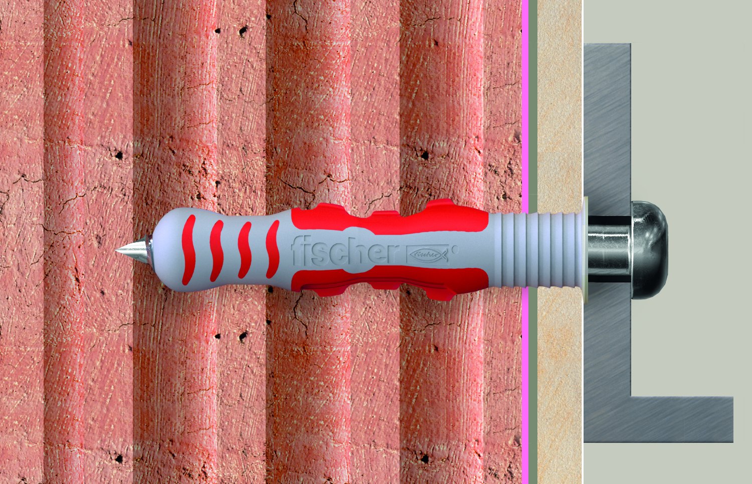 Fischer DuoSeal, Enchufe de pared, Nylon, Gris, Rojo, 38 mm, 6 mm, 50 pieza(s)