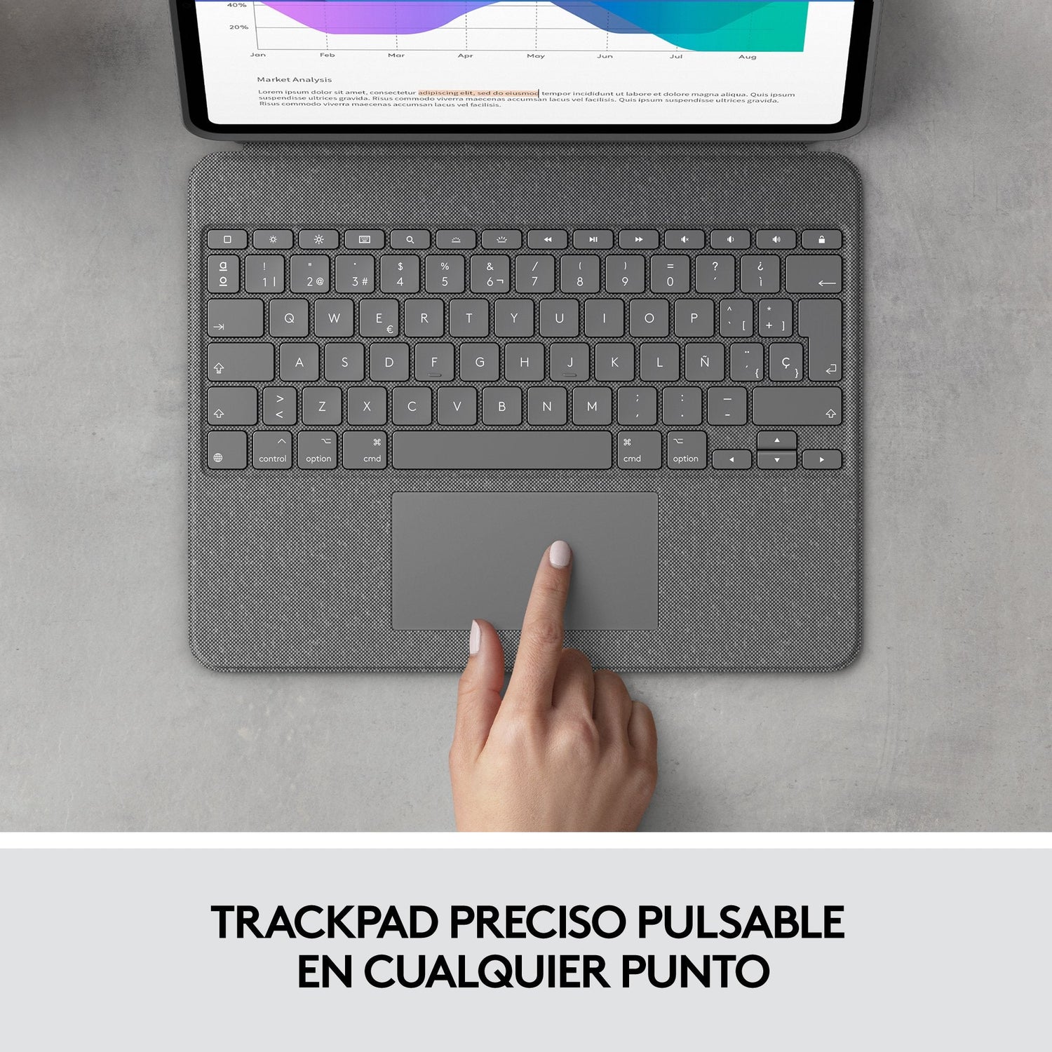 Logitech 920-010211, QWERTY, Español, Trackpad, 1,9 cm, 1 mm, Apple