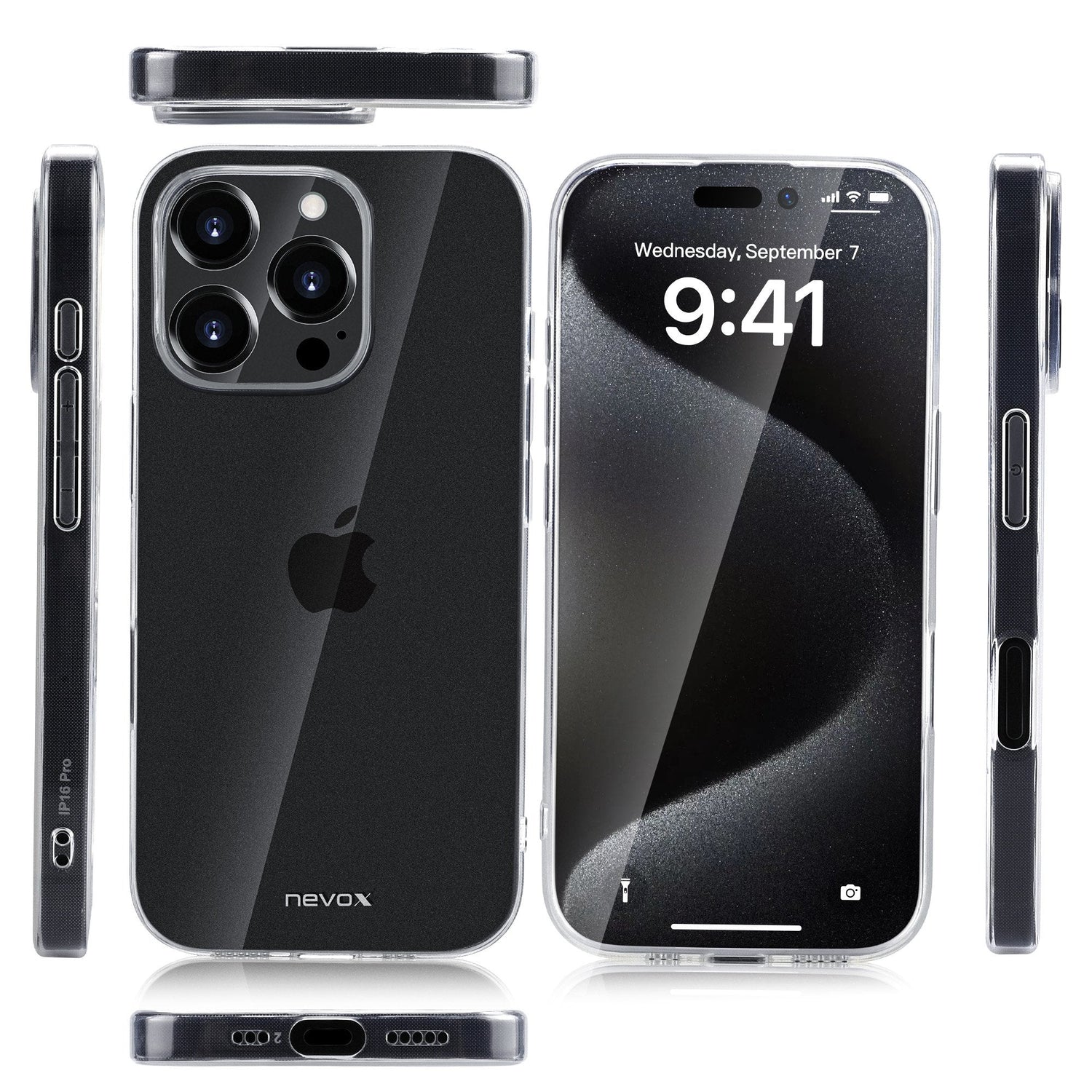nevox 2368. Tipo de funda: Funda, Marca compatible: Apple, Compatibilidad: iPhone 16 Pro, Tamaño máximo de pantalla: 16 cm (6.3"), Coloración de superficie: Monocromo, Color del producto: Transparente